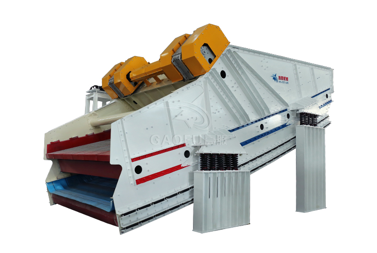 弛张振动筛从传统的圆振动筛发展而来,采用基本振动和附加振动的双重振动原理,基本振动是由偏心块旋转产生的圆形振动,附加振动是基本振动带动产生的椭圆形振动。两个参振质量以相同的频率相对振动,由于筛面两端分别安装在固定框和浮动框架上,聚氨酯筛面连续不断的扩张、收缩,从而获得较高的加速度。两个参振质量相对线性运动是可调的,可以根据筛分物料不同调整所有必要的参数。线性振动的固定筛框和被激励的浮动筛框组成了共振系统,二者产生相对运动。